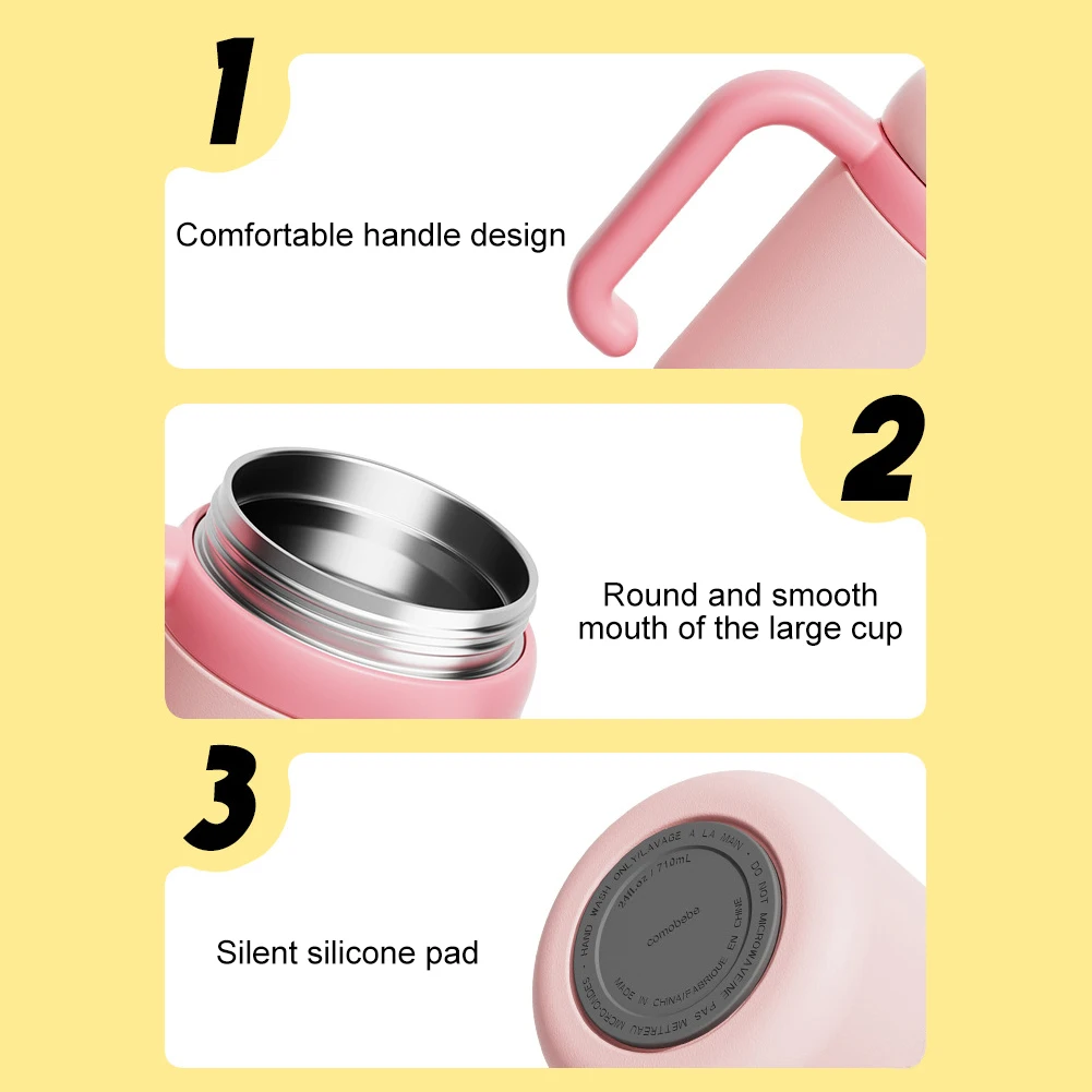 Features: 1.Fun and Educational Design: The whale fountain tumbler is designed to make drinking fun for kids while promoting healthy habits. The stainless steel version has a larger capacity and better insulation, perfect for older children, teenagers, and adults. 2.Easy to Clean: This whale fountain tumbler is dishwasher safe, maintaining clarity even after hundreds of washes. Its wide, round opening allows for quick and easy cleaning. 3.Safe: Crafted from food-grade stainless steel and BPA-free, crystal-clear Tritan material, this whale fountain tumbler is shatterproof. It keeps beverages hot or cold for up to 24 hours, maintaining the ideal temperature all day. 4.Leak-Proof Design: Featuring an integrated seal and straw lid, this whale fountain tumbler ensures no spills or leaks. The sturdy flip cap and cross-cut straw design make storage easy and prevents items from getting dirty. 5.User-Friendly: Equipped with two lids (fountain lid and direct drinking lid), offering multiple drinking options. The ergonomic handle ensures a comfortable grip for drinking from any angle. The silicone base reduces noise, is non-slip, and enhances stability. Specification: Origin: Mainland China Product size: 276.00x120.00x120.00mm Product size: 10.87x4.72x4.72inch Material: Food grade silicone + stainless steel Color: pink, yellow green, orange, royal blue, lotus root color Capacity: 710ML Note: ![]() 1 x Whale Fountain Tumbler